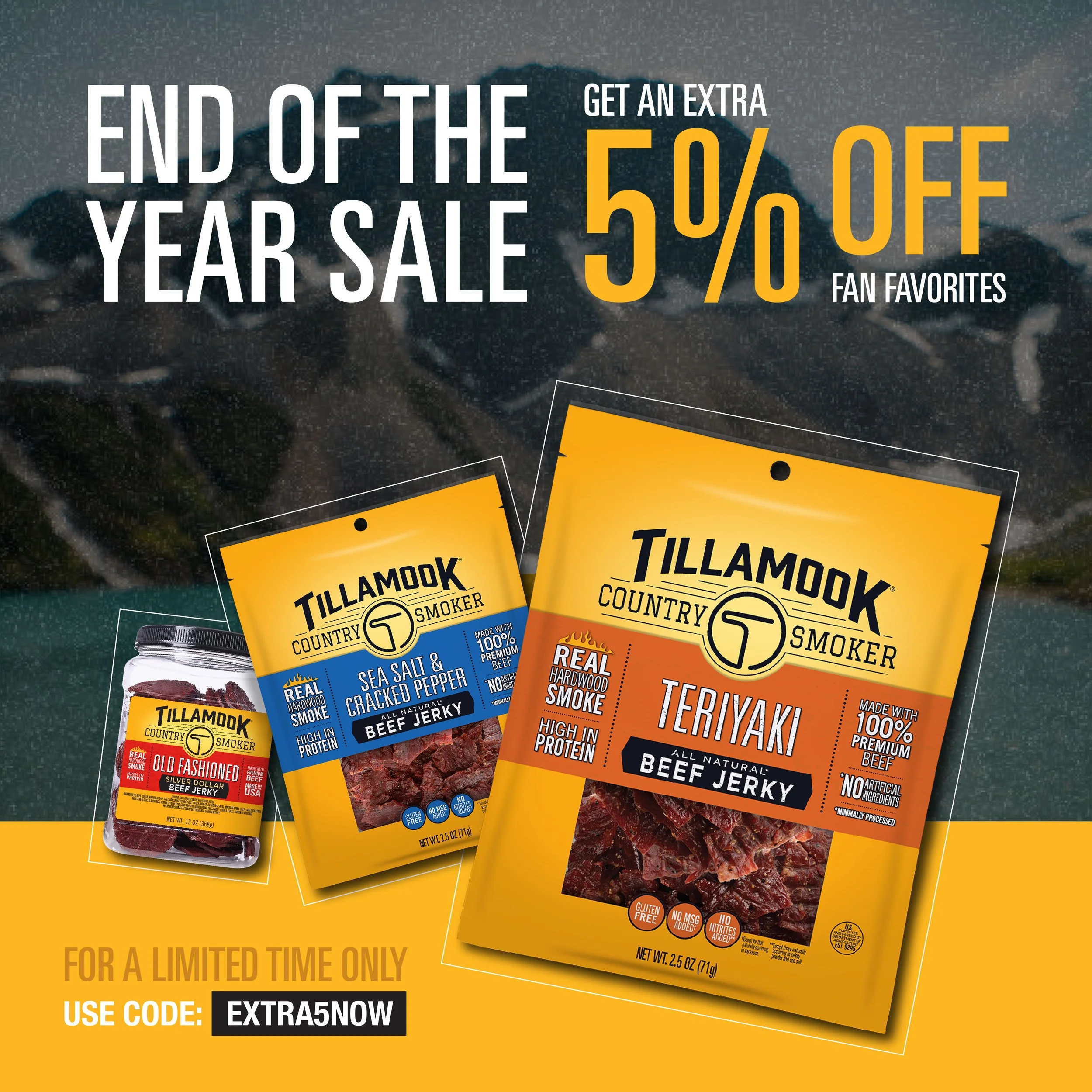 Tillamook Country Smoker adheres to the philosophy of 'good food made simply.' With a legacy spanning decades, TCS has been dedicated to preserving 100% premium beef through real hardwood smoke, earning its reputation as one of the foremost companies in the beef jerky industry, providing high-quality meat snacks. In crafting TCS's social campaign creatives, my objective was to pay homage to the rich history of their meat snacks while remaining faithful to their brand identity through sleek compositions, straightforward text overlays, and bold accent colors.